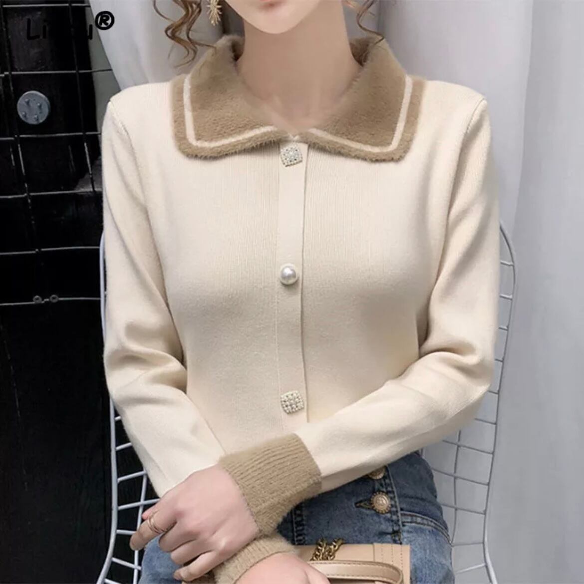 【即納】襟付きパールブレストニット | select shop -pixie-